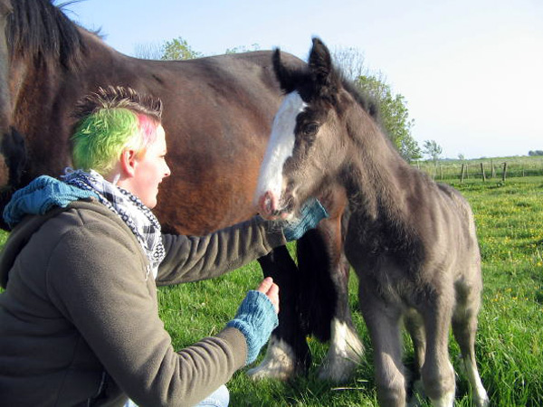 Schon vor dem Grillen hatten wir unseren ersten Programmpunkt. Es war Besichtigungstermin bei Iris angesagt. Wir sind dort zahlreich erschienen um dort die Tinker „Glen Devent“, den unsere Iris reitet und“Luna“ von ihrer Besitzerin Kirsten anzuschauen. Außerdem gabs noch zwei weitere pferdige Mitbewohner zu sehen, mit denen sich die beiden Tinkis das „Appartement“ teilen. Nachdem wir alle fleißig besichtigt hatten, gings dann weiter zu Sascha und Andrea auf den Hof. Dort waren wir schon mächtig gespannt, denn ein paar Tage vorher wurde das Tinker Baby „Lina“ geboren und wir wollten uns den kleinen Wurm natürlich am liebsten von unten, oben, vorne und hinten genau ansehen :-)