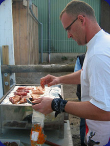 Am 19.05.07 ging es für uns quasi zurück zum Anfang des Stammtisches, denn wir waren wieder einmal zu Gast bei Sascha und Andrea. Bereits im letzten Jahr trafen wir uns bei Ihnen bei einem leckeren Spanferkel „Dinner“. Dieses Mal sollte es nun einen, von uns wohl allen geliebten, Grillabend geben. Alle hofften auf gutes Wetter und das wurde uns zum Glück auch beschert, wobei Sascha und Andrea uns aber schon die Reithalle gemütlich eingerichtet hatten, falls es doch noch ungemütlich werden sollte.